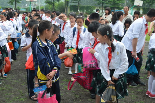 5月27日,溫州市第三屆少先隊隊長學校130名學員到文成縣樟臺圣雄希望小學開展“紅領巾與雷鋒同行”系列活動之“慶六一•送溫暖”手拉手結對活動。