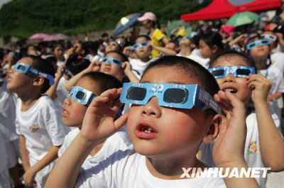 近千名小朋友帶著自制的觀測鏡齊聚廣場觀看日食奇觀