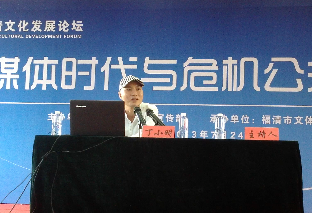 應邀參加論壇期間,丁小明以“新媒體時代與危機公關”為題做出演講。丁小明結合郭美美事件、王老吉事件、會理縣PS事件等社會案例,從什么是新媒體、自媒體。新媒體、自媒體的優劣勢,新媒體對當今社會的意義,網絡輿情與傳統輿情的差異,網絡輿情的特征與階段,網絡事件的參與因素,新媒體對社會輿情的貢獻等方面,闡述了新媒體時代人們對危機公關的認識、理解與處理方式。