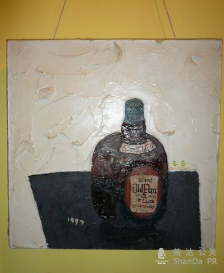不太能喝酒的小包收藏了王玉平創(chuàng)作于1997 年的這幅以酒瓶為主題的油畫(huà)作品