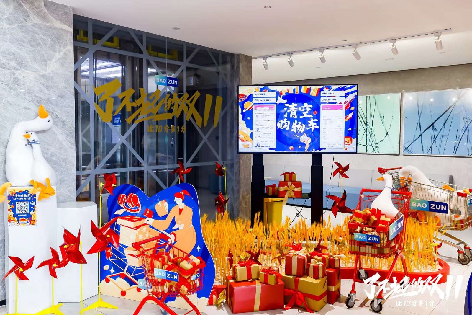 寶尊“了不起”市集活動概念主題火熱開放。辦公大樓布置、倒計時裝置、拍照墻、樂隊表演區以及“寶寶”和“尊尊”的加入把雙十一的