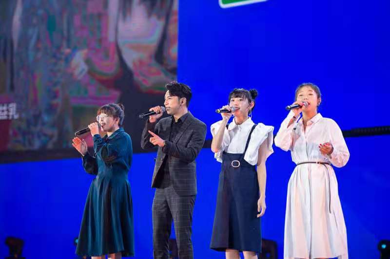 蒙牛TOP夜中,以《沖上云霄》為開場節目,民族舞曲、悠揚舞蹈、澎湃舞曲點燃了在場氣氛,更有神曲串燒展現企業各區負責人的活力風采。