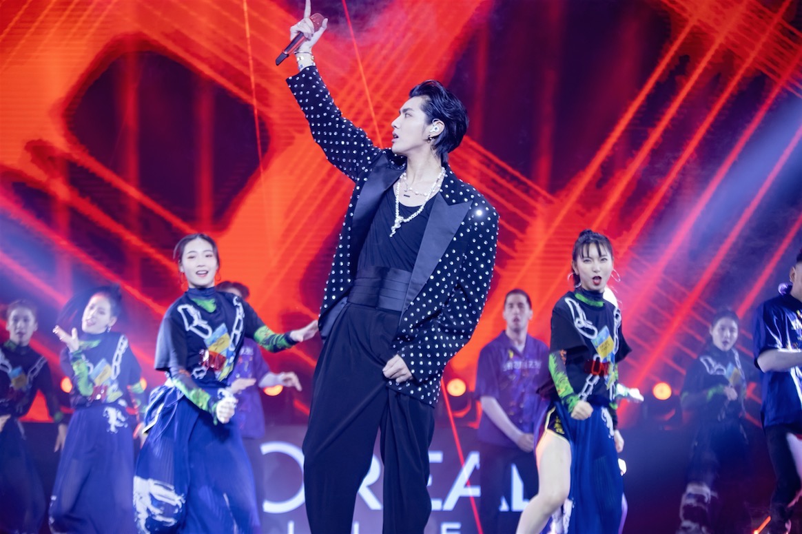 代言人吳亦凡,現身歐萊雅集團年度盛典,帶來了《貳叁》、《大碗寬面》、《Deserve》精彩舞臺,