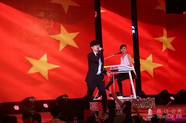 ,除了白天的隆重儀式,還有晚上的文藝晚會,特邀嘉賓有蘑菇兄弟、玖月奇跡等明星到場祝賀。